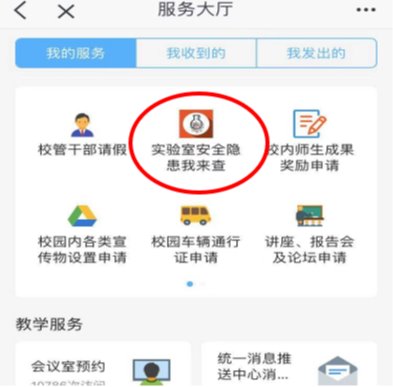 积极应用信息化手段,实现实验室安全管理和公房管理的相互联动。学生通过实验室安全考试,获得实验室准入资格后,方可在公房系统中获得实验室物联网门锁授权,有效推进实验室安全准入制度的贯彻落实。联合网信中心在学校“师生服务大厅”中建设“实验室安全我来查”模块,实现“互联网+”安全管理,全校师生可以在线上报实验室安全隐患,及时跟踪处理。组织开展了实验室安全分类分级,制作统一的安全管理信息门牌,详细标注实验室内存在的危险源和需采取的防护措施,有效加强了重点部位安全管理的针对性和有效性。