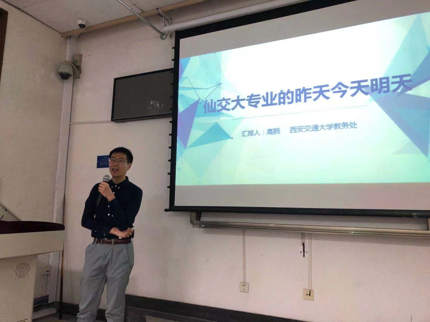 教务处高腾对专业的内涵进行了解读,并对我校专业开设的历史、现状和未来进行了梳理。自1956年内迁西安后,学校先后开设了诸如水利、采矿、纺织等符合时代需求和国家建设需要的专业,并在原有7大系所的基础上,用短短四年时间开设了一批包含应用数学、工程力学、实验原子核物理等关乎国计民生的专业在内的17个专业,为交大现有学科专业体系的构建奠定了基础。目前,学校备案本科专业90个,其中招生专业72个,国家一流专业点40个、省级一流专业19个,涉及工学、理学、文学等九大学科门类,真正实现了学校的综合发展,满足学生多方位的专业选择需求。未来,学校将以“固本强新、交叉融合、创建一流专业,支撑学校跨越式发展”为目标,针对现有部分专业设置知识体系滞后、内涵建设不足、院系存在壁垒等问题,改造升级现有专业、规划孕育新兴专业,开设一批符合时代需求、突出交大特色的前沿专业。通过高腾声情并茂的解说,同学们对自己心仪专业的“前世今生”有了更加生动直观的认识,也对其专业内涵和国家社会需求两者之间的关系有了更加深刻的体会。