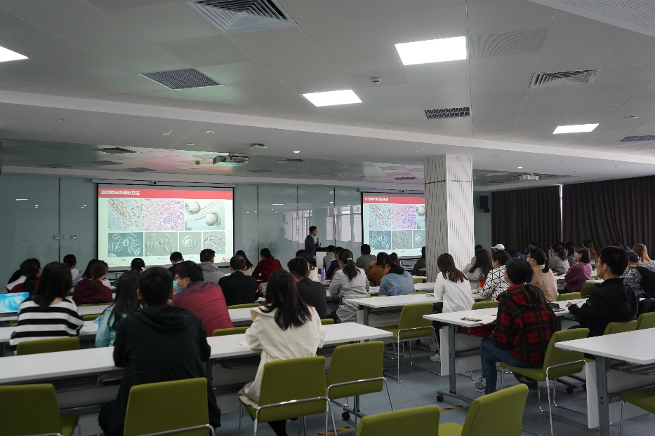 4月16日,中心邀请徕卡应用工程师共同开展了第35期分析测试技术交流论坛“超高分辨激光共聚焦显微镜培训”,吸引了来自校内外百余名师生参与,介绍完设备基本原理之后,工程师还向大家展示了最新的共聚焦科研应用方向,与会师生互动交流频繁。