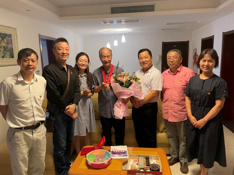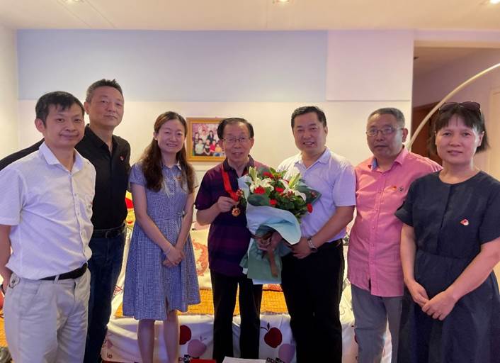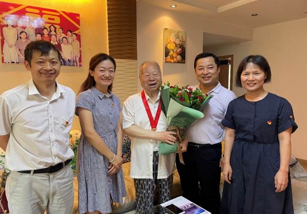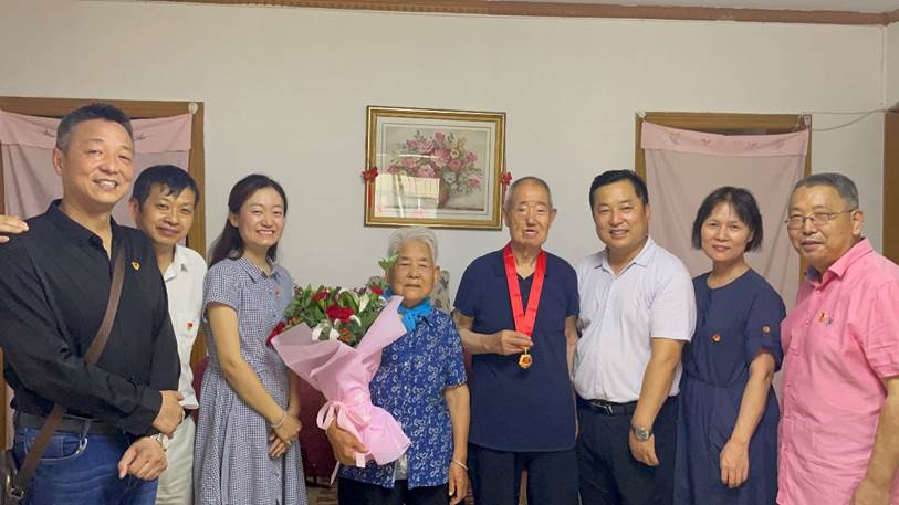 在中国共产党成立100周年之际,“七一”前夕,机关与直属单位纪委委员、校工会副主席弋景峰,图书馆党总支书记、副馆长纪洁菲,副书记张冀湘带领总支委员等同志走访慰问图书馆老党员、老干部,向他们致以“七一”的节日问候,并为他们颁发“光荣在党50年”纪念章。