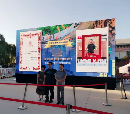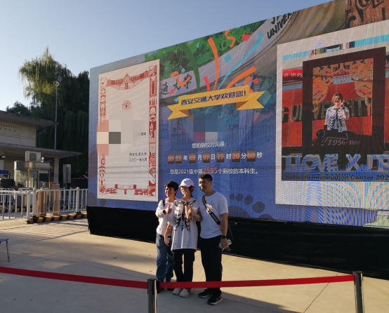 自2020年起,因学校疫情防控工作需要,新生报到不能由家长陪同入校,为了让家长们在孩子成长的关键时刻不留遗憾,为了纪念留存每一位新生迈入人生新阶段的第一足迹,学校网信中心在全国高校中首创研发“西安交通大学欢迎您”迎新视频墙,设置于全校各校区迎新通道,借助信息化手段让疫情特殊时期的迎新工作更加暖心,让新生入学更添仪式感。