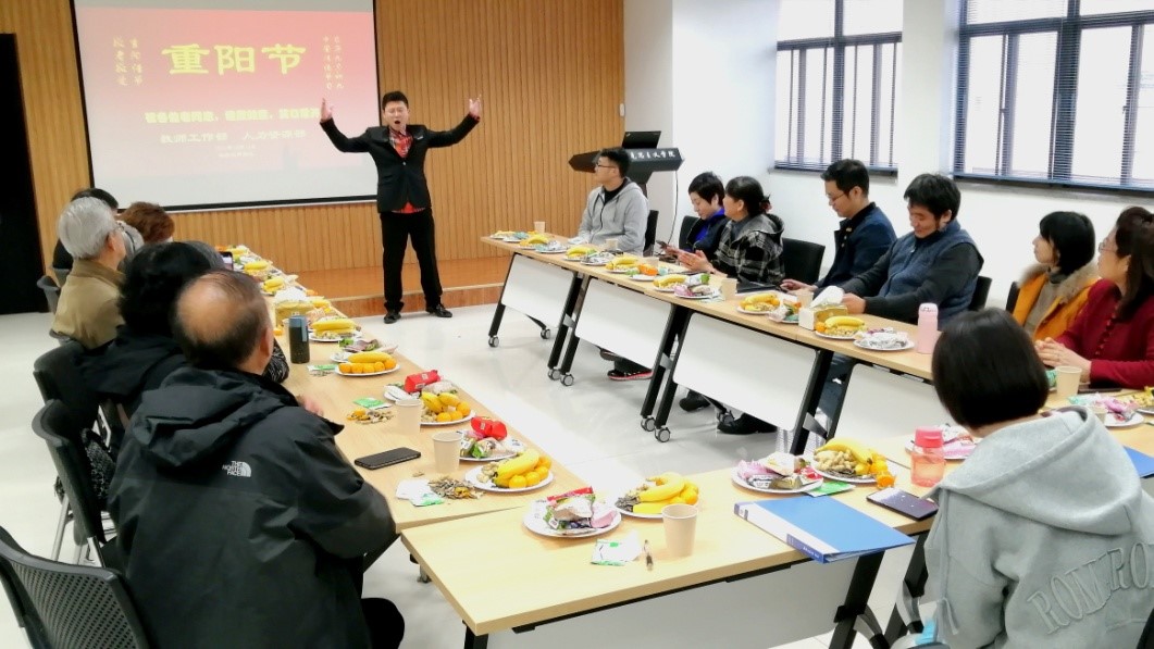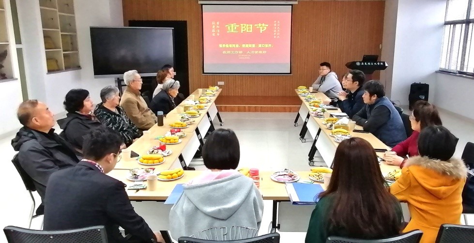 重阳佳节,敬老爱老。10月14日下午,教师工作部、人力资源部在兴庆校区教学主楼E座505会议室举办离退休教职工重阳节茶话会活动。人力资源部离退休老同志、部领导和青年同志近20人参加了茶话会。