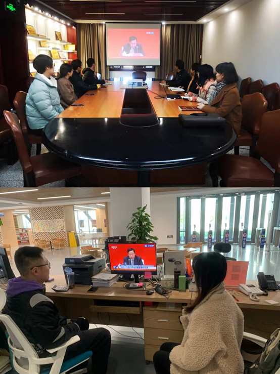 11月12日图书馆党支部组织全体党员以部室党小组为单位,在线观看了党的十九届六中全会新闻发布会,并进行热烈讨论交流。