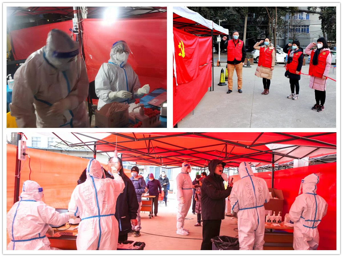 住在兴庆家属区的党员同志积极响应学校党委和社区号召,纷纷投身到到社区志愿者的行列。张靖尉充分发挥组织特长,承担起志愿者统筹协调的工作,对接汇总从各个渠道报名的志愿者,统筹分配工作任务,快速响应落实工作专班指示。从发布核酸检测通知安排、调配防疫物资,到应对突发情况增补调配人手,始终紧绷着神经时刻待命;杨美玲为志愿服务做好数据统计和信息传递,加入电话值班小组,为社区居民及时传导政策信息,帮助高龄老人联络解决缺菜缺药的特殊困难等;张超雅穿上防护服,积极协助核酸检测工作,坚守起信息核验和导流的岗位,最大程度减少大家外出期间的风险;张英佳发挥挂职年轻干部的优良作风,坚持保障人才服务,引导协助医护人员为院士做好核酸检测;翟娜、高宏、魏朋、徐大锴等党员干部坚定站在社区疫情防控第一线,维护秩序、讲解政策、处理紧急事件、协调物资保障……所有党员同志携手并肩,都在为有序、安全地度过这最艰难的时期作着自己的贡献。