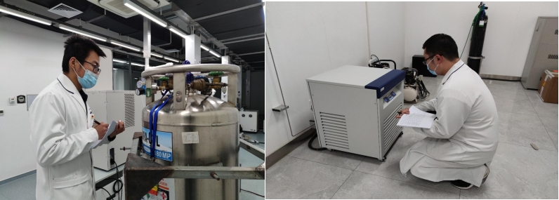 90后新入职的研究生王佳伟、范海涛,作为入党积极分子,主动承担起了疫情防控期间中心的大型仪器设备巡检和后勤保障任务。两位工程师采取视频连线的方式与在家隔离的工程师沟通,按照操作流程关闭部分仪器设备,将大型电镜和质谱设备调整为待机模式,每天检查仪器附属间的氮气存量,必要时搬运更换前期储备的气体,同时加强实验室内温度、湿度的检测并记录,确保了中心大型仪器设备的安全。他们闲暇时也不忘学习,继续钻研分析测试技术,为下一步工作打好基础。当马养护老师问他们留下来一起抗疫有没有怨言,他们俩人连连摆手说:“老师,您和周国庆老师都留下来了,亚云老师和格格老师也留下来了,我们这些小年轻怎么能缺席后退?我们今天的付出,就是为了疫情结束后第一时间能为师生做好分析测试实验,为中心和学校分忧。”