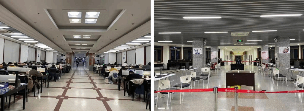 为确保考研的顺利进行,图书馆迅速成立“服务突击小分队”,确保馆内空间及各项服务的正常开展,竭力保障同学们全力冲刺考研。加强每天对馆内各楼层公共空间、阅览座椅、电梯间等处的卫生清洁、消毒杀菌工作,确保环境卫生安全。12月25-27日,兴庆校区图书馆作为考研校外考生休息点,接待考生3000余人,为大家提供休息场地及冷热饮服务,并设立核酸检测点,守护师生健康,确保疫情防控安全。