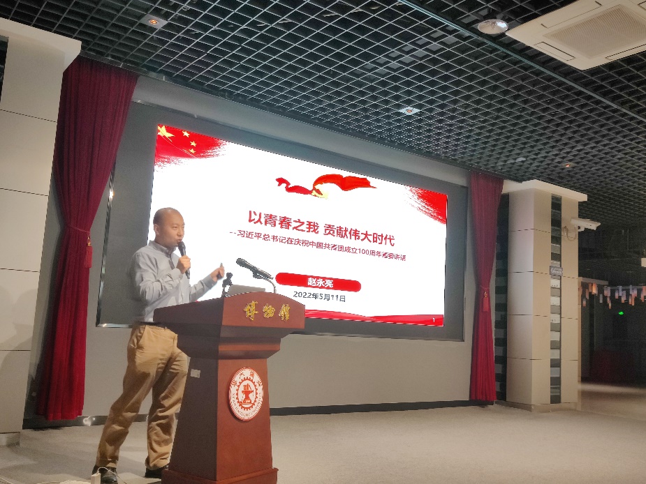 机关团工委副书记、机关党委办公室主管赵永亮带领大家学习习近平总书记在庆祝中国共产主义青年团成立100周年大会上的重要讲话,重点围绕共青团自我成长的历程、共青团和青年工作的历史经验等进行深入学习。
