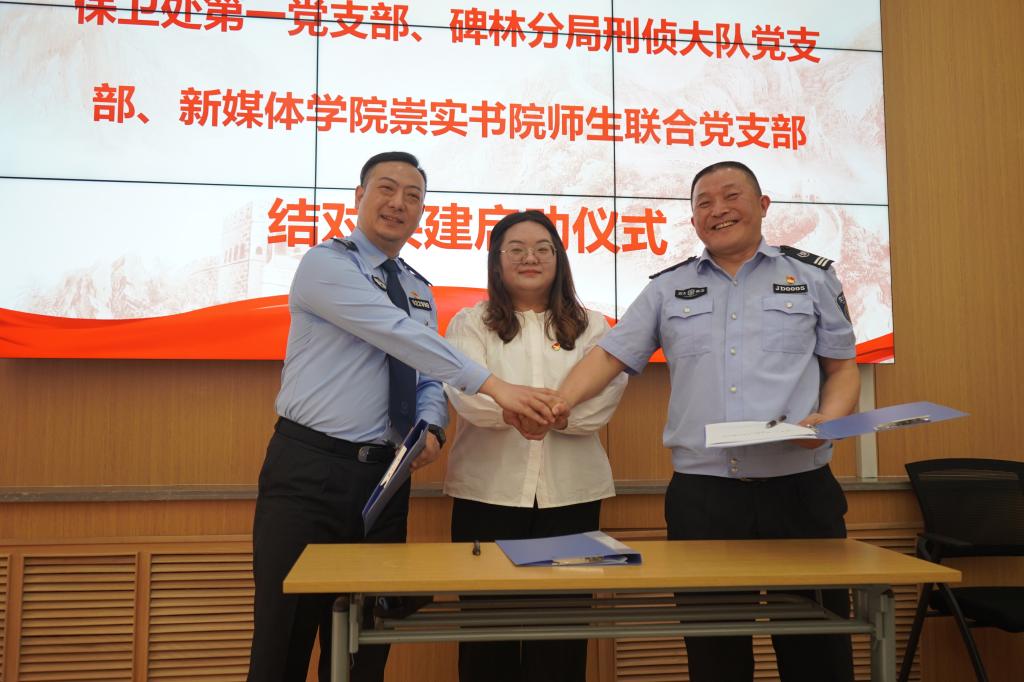 启动仪式上,保卫处第一党支部副书记尤志强、碑林分局刑侦大队党支部书记畅飞、新媒体学院崇实书院师生联合党支部书记吴瑞琳分别介绍了各自支部的基本情况,共同签署支部共建协议书。