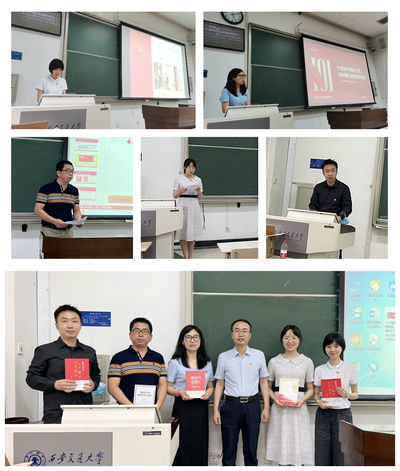为检验党史学习教育常态化成效,按照支部安排,吴东升、杨美玲、武婧、谢保军、陈媛5位同志分别对自己阅读《中国共产党简史》后的体会进行分享。五位同志生动讲述了中国共产党从创立之初投身大革命的洪流开始,直到夺取民主革命的全国胜利,最终带领中国人民进入社会主义改革开放和现代化建设新阶段的发展壮大过程。同时还分享了通过党史学习对岗位工作的思考、对成长发展的启发,表示要知古鉴今,以高尚追求为精神底色,担当在前、奉献在前、实干笃行。