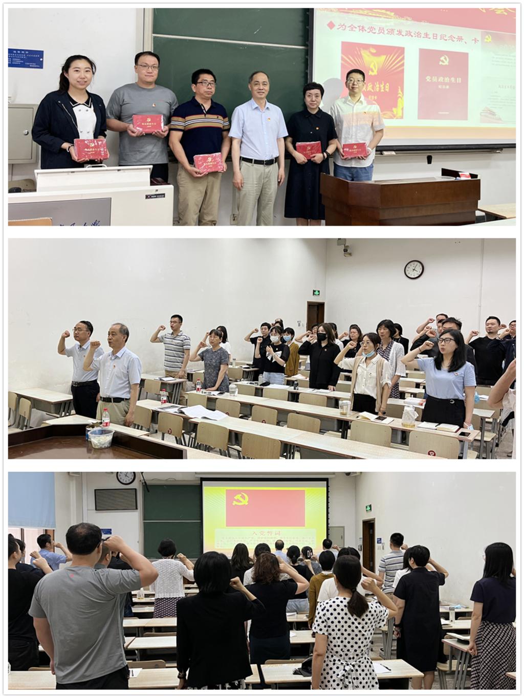 为增强全体党员的荣誉感和责任感,党支部首次为大家准备了党员“政治生日纪念册”。荣命哲为全体党员颁发政治生日纪念册(卡),提醒、激励党员不忘初心、牢记使命、奋发作为。支部书记雷利利带领全体党员面向鲜红的党旗重温了入党誓词。