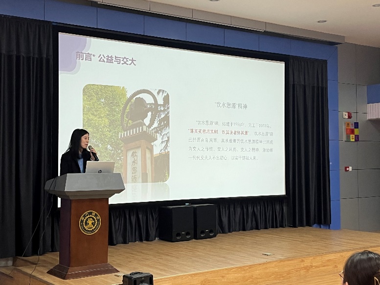 基金会毛珊以“饮水思源”为主题,讲述了交大公益历史,介绍了基金会开展公益活动的基本情况、基金会发展概况、主要业务及取得的成效,提出了四条支部公益共建的思路。她表示,希望在每个学子的心中,都能种下一颗公益的种子,让公益理念在交大的校园里生根发芽。