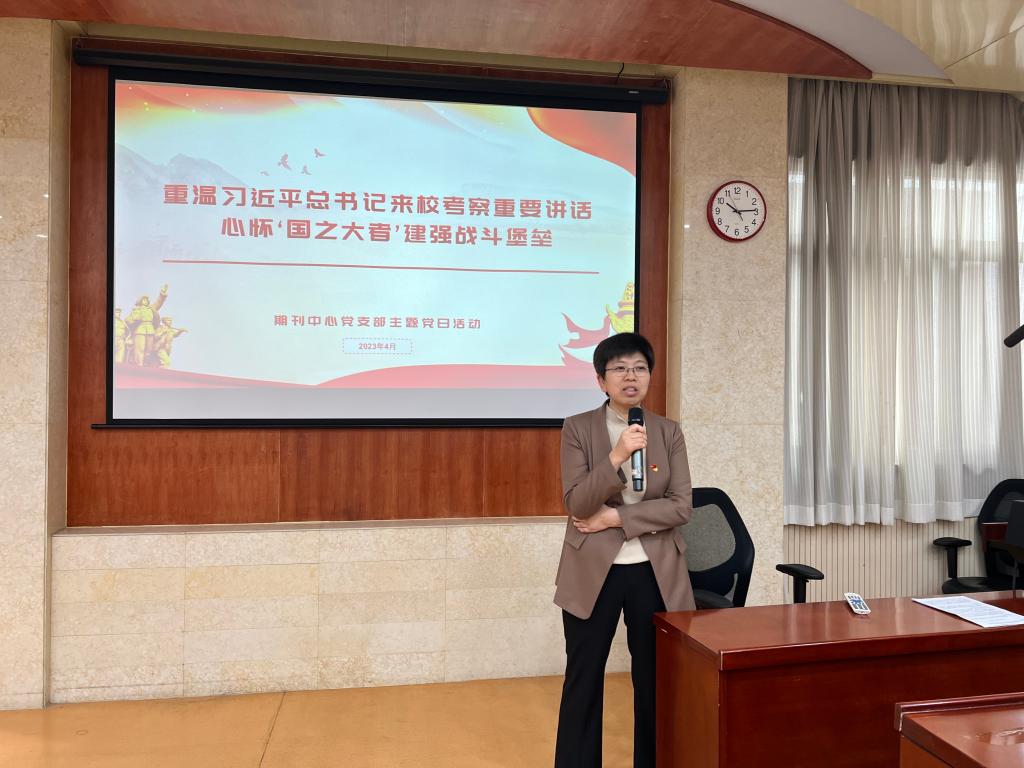 期刊中心党支部召开学习贯彻习近平新时代中国特色社会主义思想主题教育动员会。党支部书记张丛带领与会同志深入学习了习近平总书记在学习贯彻习近平新时代中国特色社会主义思想主题教育工作会议上的重要讲话精神,传达了学校主题教育方案的指导思想和工作部署,分享了个人学习党的二十大报告的心得体会,并结合期刊中心工作实际,作出下一步开展主题教育的安排部署。张丛强调,提高政治站位、强化理论武装对于期刊中心每一位教职工都具有非常重要的意义,同志们要以此次主题教育为契机,将学懂弄通做实习近平新时代中国特色社会主义思想作为政治责任,切实增强“四个意识”、坚定“四个自信”、做到“两个维护”,推动党的创新理论真正入脑、入心、入行。