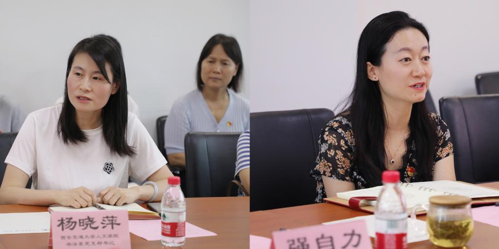 西安交大图书馆副馆长杨峰,副馆长、党总支书记纪洁菲,副馆长强自力;人文学院党委书记纪梦然、党委副书记王劲,中国书法系主任、党支部书记杨晓萍,以及双方支部党员、学生代表参加活动,活动由图书馆第一党支部张一翠主持。
