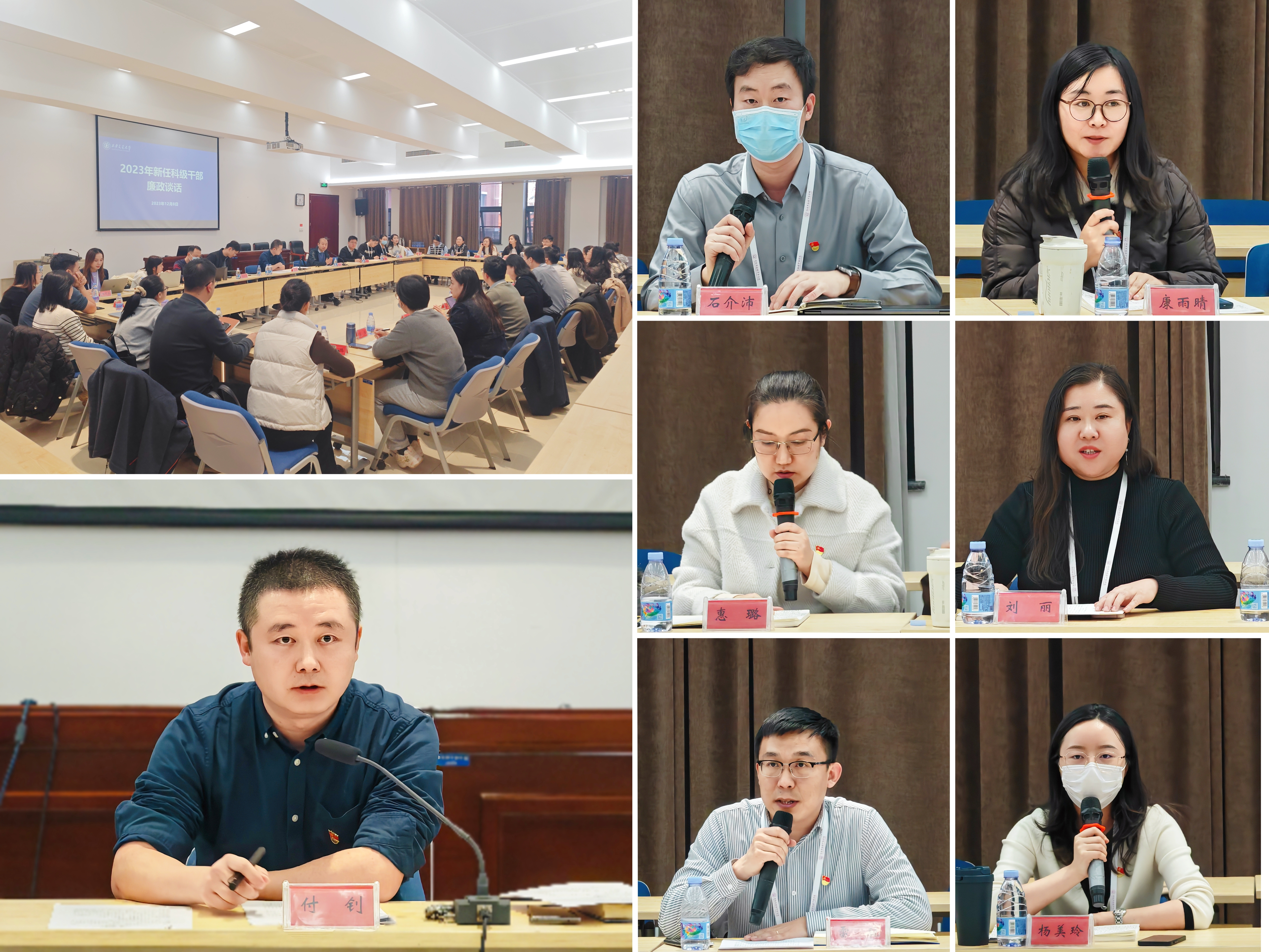 为加强对年轻干部的教育监督,机关与直属单位党委副书记、纪委书记付钊同新任科级干部进行集体廉政谈话。付钊强调,要时刻自重自省,守住守牢政治关、权力关、交往关、生活关、亲情关,构筑起拒腐防变的坚固防线。教务处石介沛、后勤保障部惠璐、党委宣传部雷驰、档案馆博物馆康雨晴、学生处刘丽、人力资源部杨美玲6位新任干部代表作表态发言。