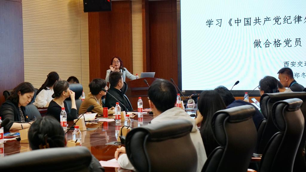 会议邀请马克思主义学院郑冬芳教授作题为“学习《中国共产党纪律处分条例》 做合格党员”的讲座。郑冬芳从前提性问题出发,深入介绍了《中国共产党纪律处分条例》的制定、修改过程,并对具体条例进行了解读。讲座内容系统全面、深入浅出,有效加深了在座党员对党的纪律的认识和理解。