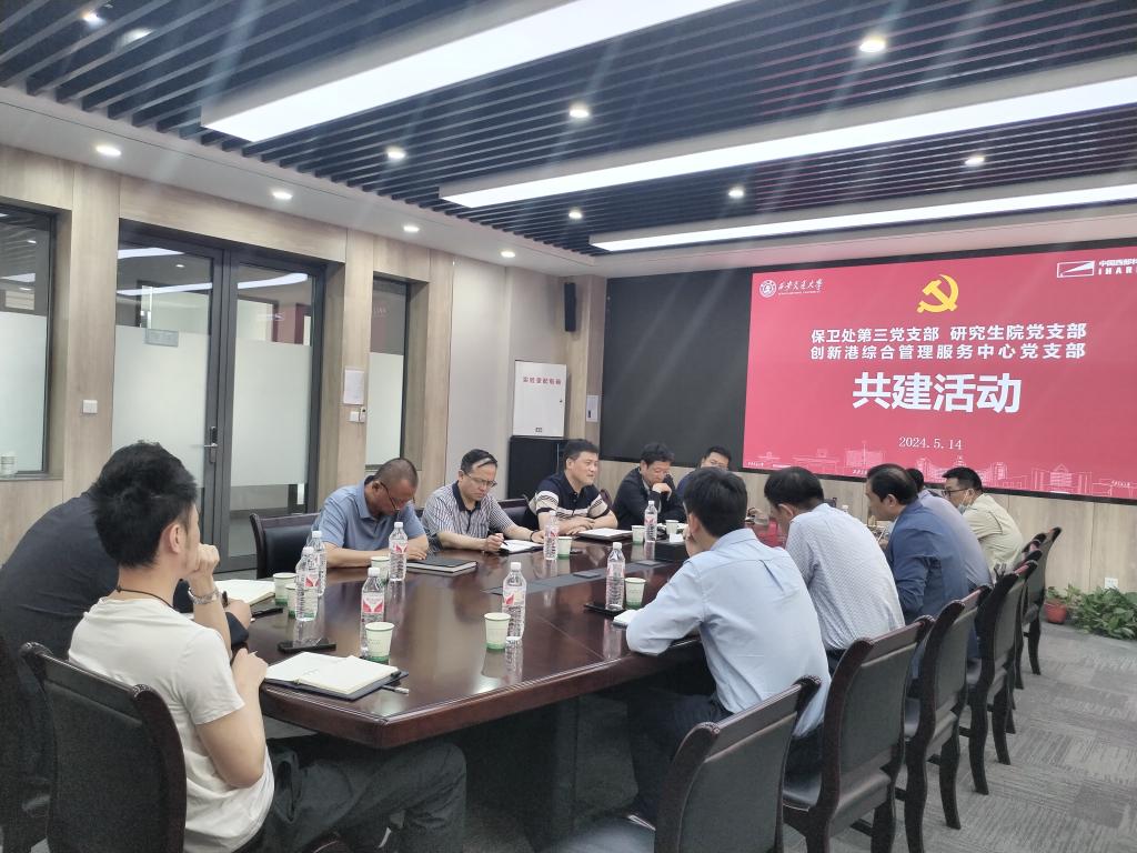 为突出实效破解难题,推进“一站式”育人工作模式,促进党建业务深度融合,5月14日上午,保卫处第三党支部、研究生院党支部、创新港综合管理服务中心党支部开展支部共建活动。保卫处政委周建伟、副处长师小锋、研工部副部长邢鹏,创新港综合管理服务中心主任巩滨、副主任吴勇,三个支部的党员代表参加,研工部部长薛周利主持活动。机关与直属单位党委副书记付钊出席。