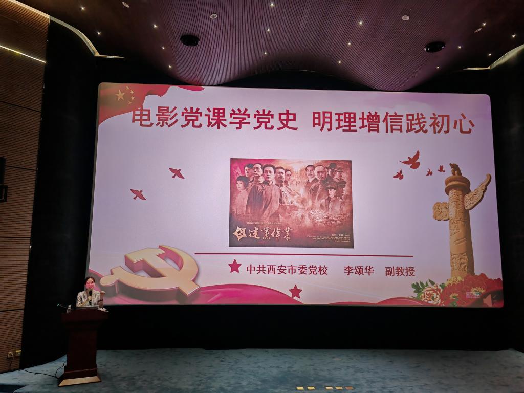 西安市委党校副教授李颂华通过电影《建党伟业》,采用“理论讲授+电影片段赏析”相结合的形式,将影片放映与党课宣讲相融合,将“看”与“讲”融为一体,为同志们上了一堂别开生面的电影党课。诠释了为什么历史选择了共产党,为什么共产党选择了马克思列宁主义,为什么共产党被人民所选择,让大家对中国共产党的先驱们创建中国共产党形成的坚持真理、坚守理想、践行初心、担当使命、不怕牺牲、英勇斗争、对党忠诚、不负人民的伟大建党精神有了更深的理解和感悟。