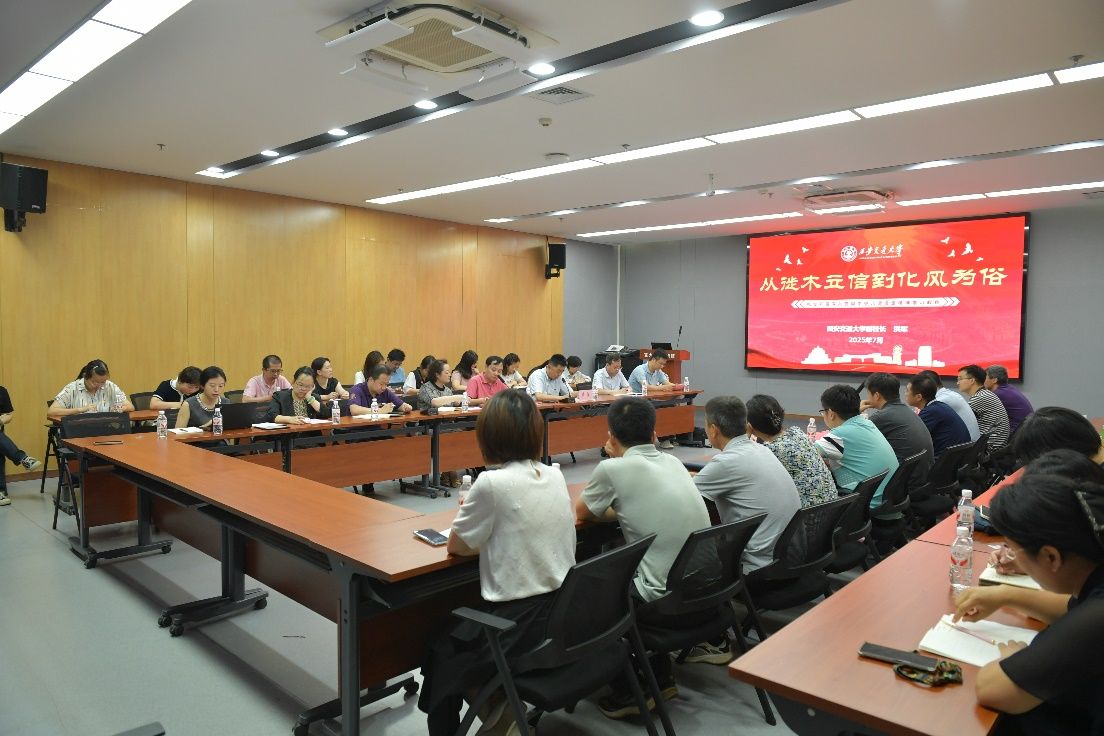 洪军以《从徙木立信到化风为俗——扎实开展深入贯彻中央八项规定精神学习教育》为题讲授专题党课,系统梳理了中央八项规定从制定到实施的重要节点,深刻阐释了其作为全面从严治党、加强作风建设、密切联系群众的核心内涵,并通过以案说法,深入剖析了形式主义、官僚主义等违反中央八项规定精神的具体表现及危害后果。洪军围绕“如何办好人民满意的教育、如何培养人才”进行深入交流,并围绕日常工作中存在的形式主义、官僚主义问题进行分析总结。洪军指出,党中央制定实施中央八项规定是党在新时代的徙木立信之举,全体党员同志要深学细悟习近平总书记关于加强党的作风建设的重要论述,切实将中央八项规定精神内化于心、外化于行,以坚定的政治自觉和扎实的行动自觉,推动作风建设常态化长效化,把学习教育与日常工作结合起来,为学校信息化事业高质量发展提供坚强保障。