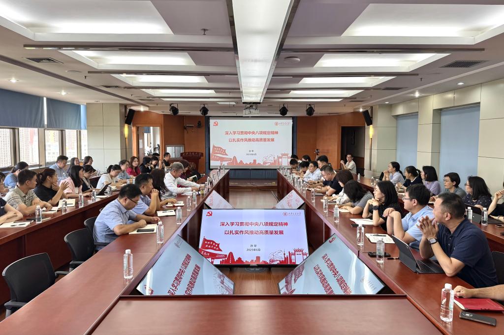 孙早作了题为《深入学习贯彻中央八项规定精神以扎实作风推动高质量发展》的专题党课,领学了习近平总书记关于深入贯彻中央八项规定精神的重要论述,他从延安作风出发,回顾了中央八项规定的历程、分析了历史逻辑、理论逻辑、实践逻辑,全面总结了党的十八大以来贯彻落实的举措和宝贵经验,深刻剖析了违反中央八项规定精神典型案例,并就持之以恒贯彻中央八项规定精神、以优良作风引领高质量发展提出了具体要求。